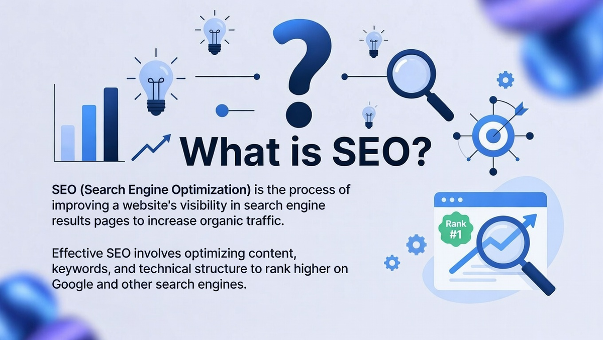 SEO (Search Engine Optimization) is the process of improving your website to increase its visibility on traditional search engines like Google and Bing. The goal of SEO is to ensure your content ranks highly on search engine results pages (SERPs), making it easier for users to find your website.
