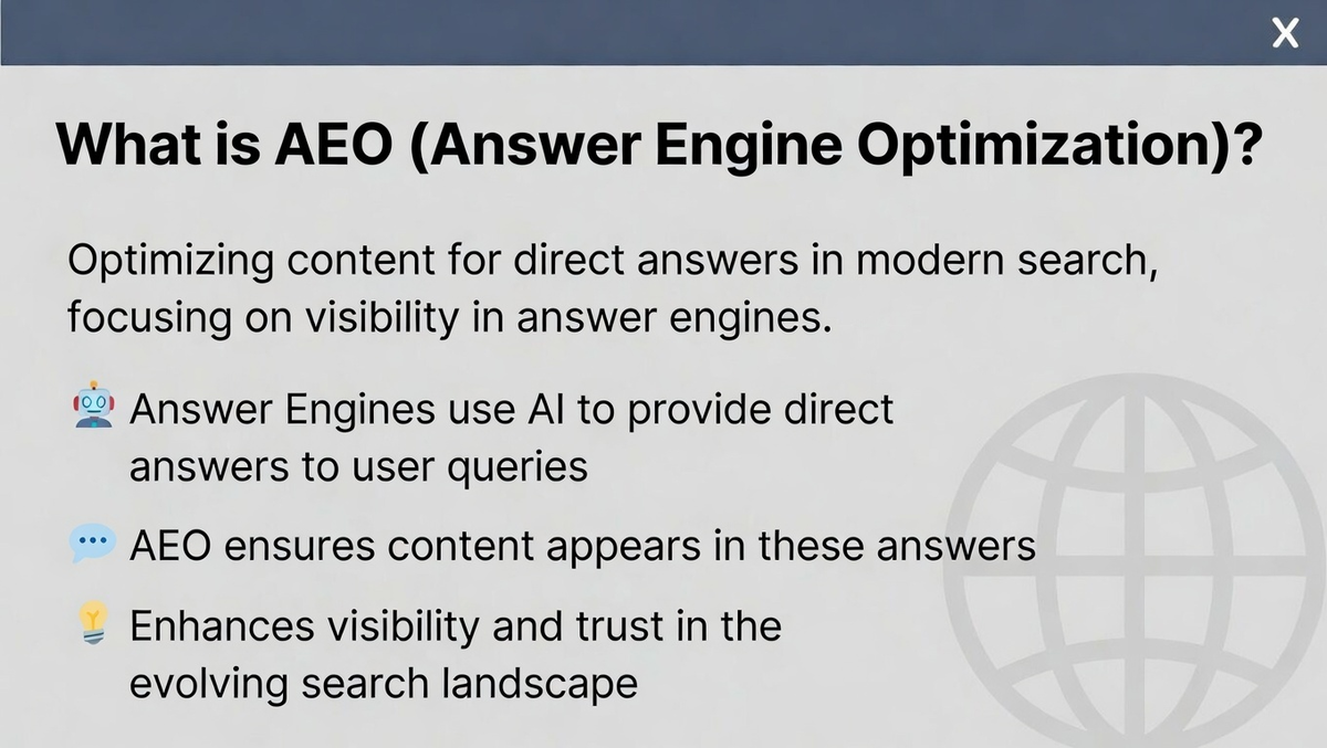 AEO (Answer Engine Optimization) is a strategy designed to optimize content for AI-driven search engines like Google’s AI Overviews, chatbots, and voice assistants. Unlike traditional SEO, which focuses on ranking content on search engine results pages, AEO targets AI systems that provide direct, concise answers to user queries.