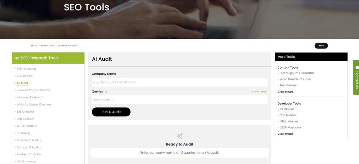 AI Audit tool focuses on analyzing content in specific queries and providing an overall grade of the optimized paragraph.