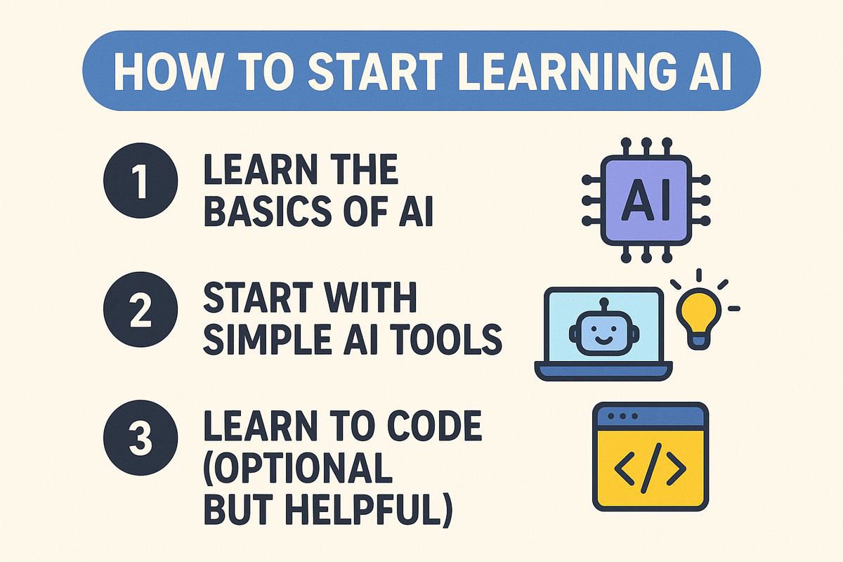 Artificial Intelligence (AI) is changing the world. From smart assistants like Siri and Alexa to self-driving cars and recommendation systems, AI is everywhere. But many people wonder how to learn AI and where to start.