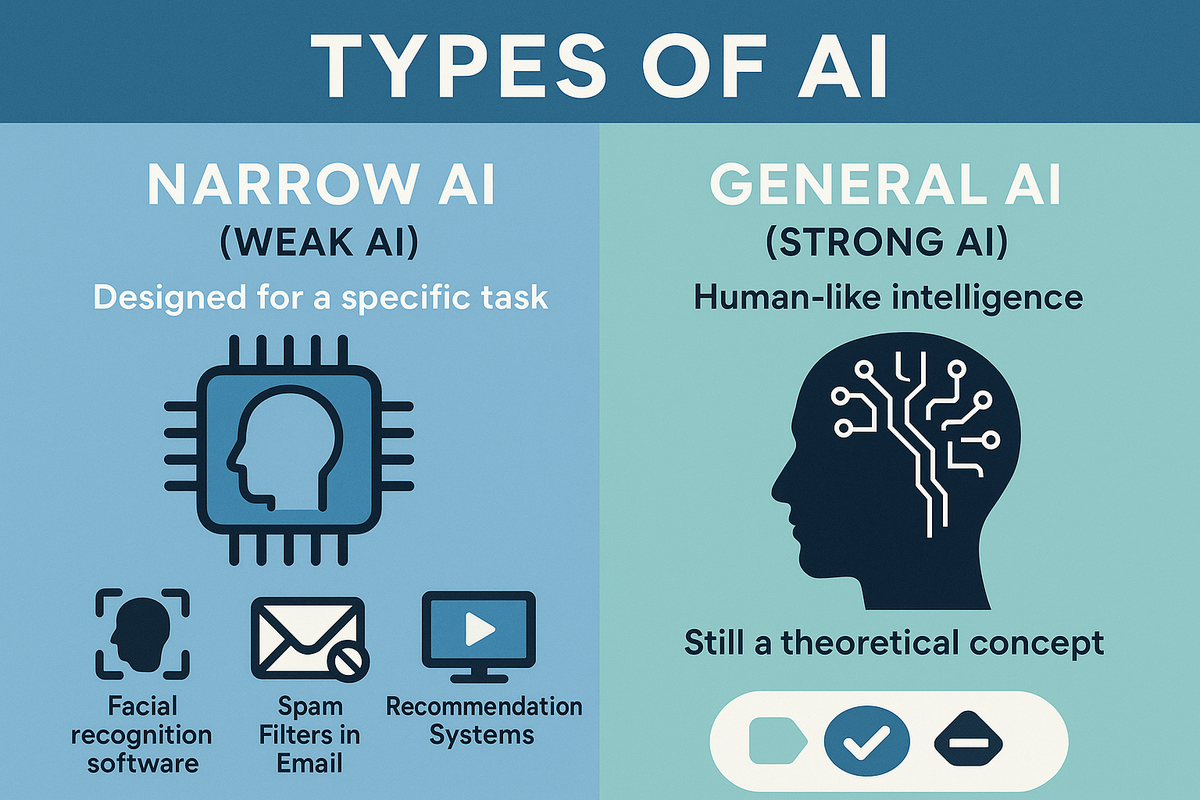 AI is often divided into two main categories, based on how much it can do and how "intelligent" it is: