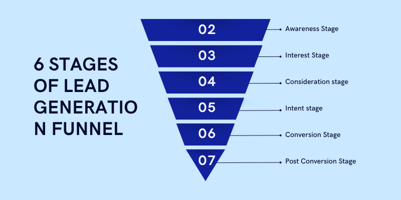 The lead generation funnel outlines the journey prospects take from first discovering your brand to becoming loyal customers.