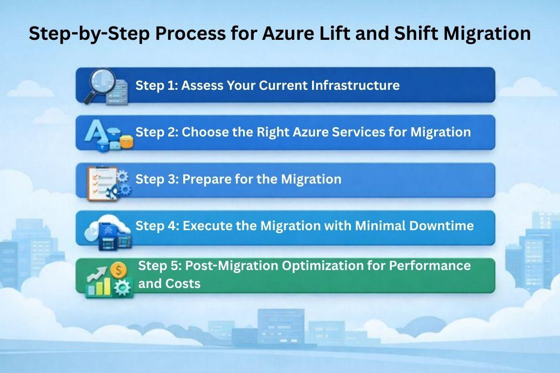 The Lift and shift cloud migration process requires careful planning and execution to ensure a smooth and successful transition to Azure. Following a structured, step-by-step approach helps minimize risks and ensures cost efficiency.