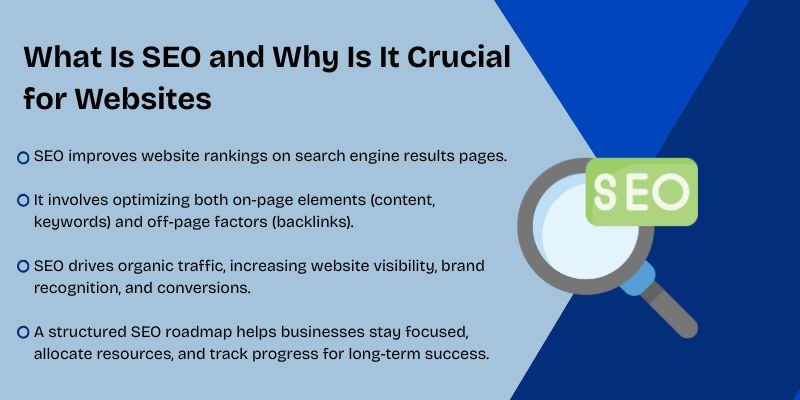 A structured SEO roadmap ensures that businesses stay focused, allocate resources effectively, and avoid missing key SEO tactics. It helps track progress and make data-driven decisions, ensuring continuous improvement. This alignment is critical for achieving long-term SEO success.