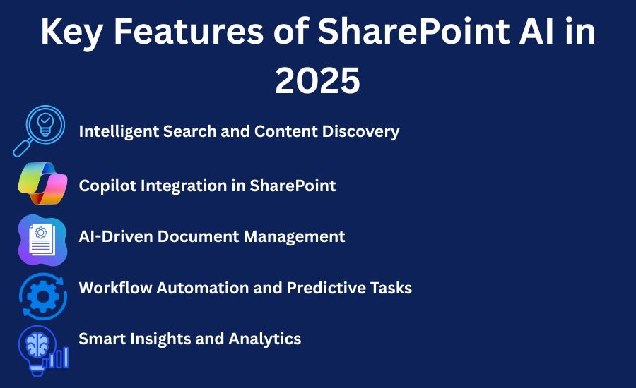 In 2025, SharePoint AI is centered on Copilot-driven document search, automated tasks, and adaptive insights. It learns from user activity and offers suggestions that save time. This new era of SharePoint focuses on intelligence, not just storage. It helps businesses turn data into action and teamwork into results.