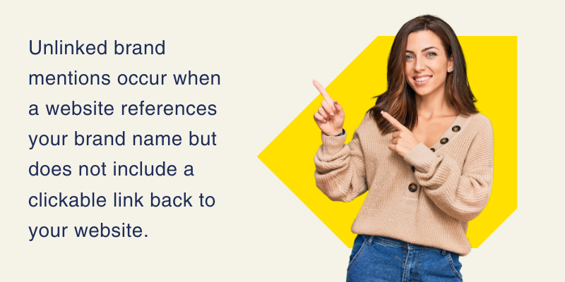Unlinked brand mentions are instances where a website mentions your brand name in its content but does not include a clickable link back to your website.