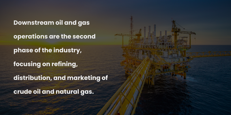 Downstream oil and gas operations are the second phase of the industry, focusing on refining, distribution, and marketing of crude oil and natural gas.