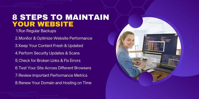Keeping your website in great shape goes beyond design. It directly affects speed, security, and user trust. Regular maintenance helps your site run smoothly, perform well in search engines, and meet visitor expectations.