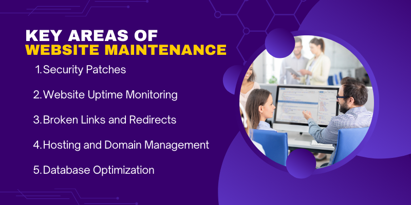 Proper website maintenance focuses on several key areas to ensure the site is secure, functional, and performing at its best.