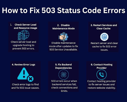 The 503 status code appears when a website server cannot handle requests temporarily. Understanding What Is 503 Status Code helps businesses recognize that prevention is easier than fixing the issue later. Many 503 errors happen due to poor server setup or lack of monitoring. Taking preventive action ensures stable performance and fewer interruptions.