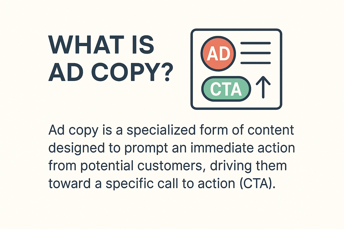 Ad copy is a specialized form of content designed to prompt an immediate action from potential customers, driving them toward a specific call to action (CTA).