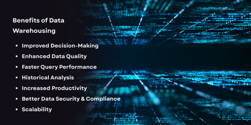 Data warehousing enables businesses to consolidate data from multiple sources, offering a unified view that supports informed decision-making. By analyzing historical data, organizations can make more accurate predictions and long-term strategic plans based on reliable insights.