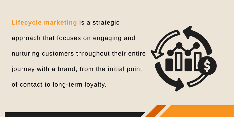 Lifecycle marketing is a strategic approach that focuses on engaging and nurturing customers throughout their entire journey with a brand, from the initial point of contact to long-term loyalty.
