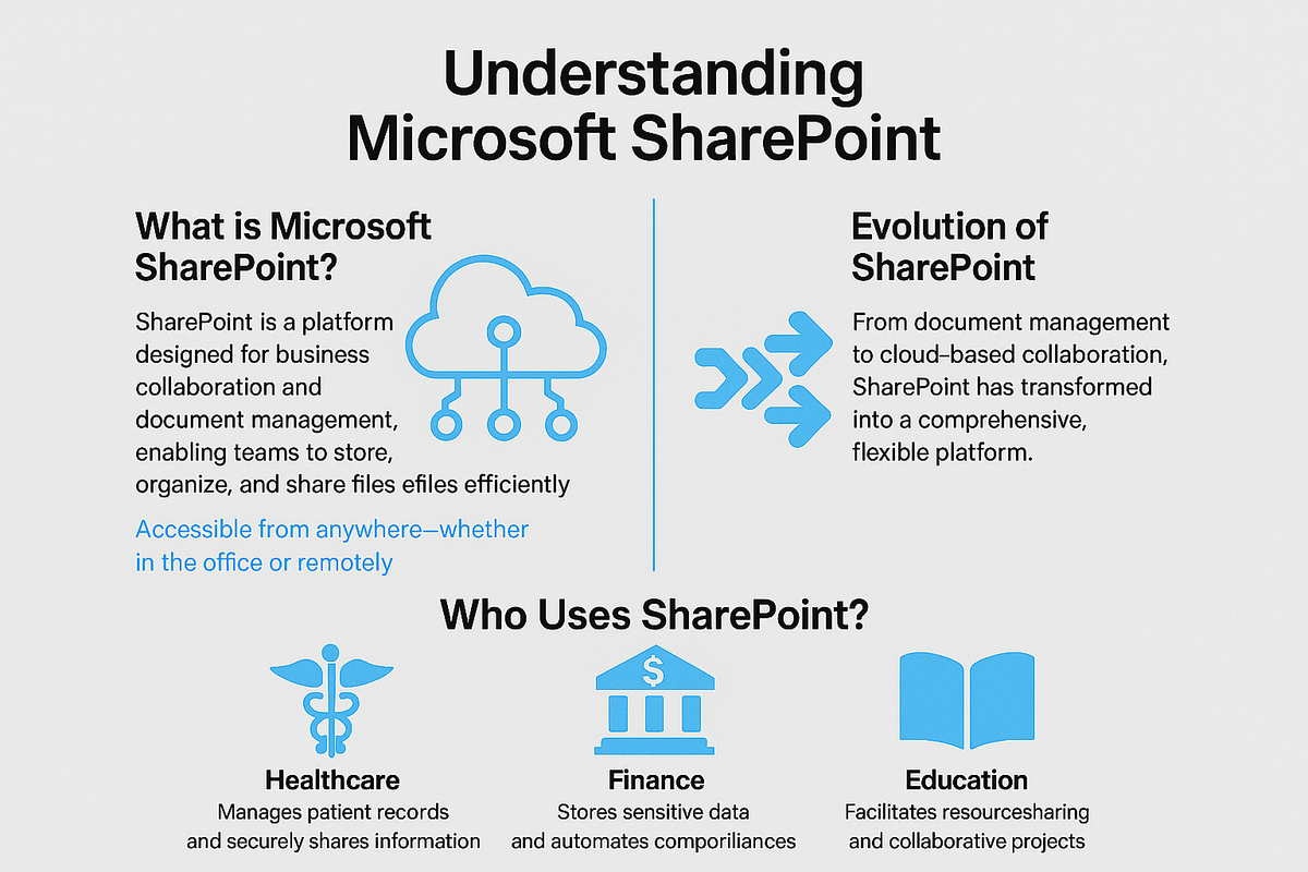 Microsoft SharePoint is a powerful tool for businesses looking to improve collaboration and document management. It helps teams work together efficiently and securely. With features like real-time collaboration and seamless integration with Microsoft 365, SharePoint is customizable to meet the unique needs of any business. Whether managing documents or automating workflows, SharePoint streamlines operations and boosts productivity.