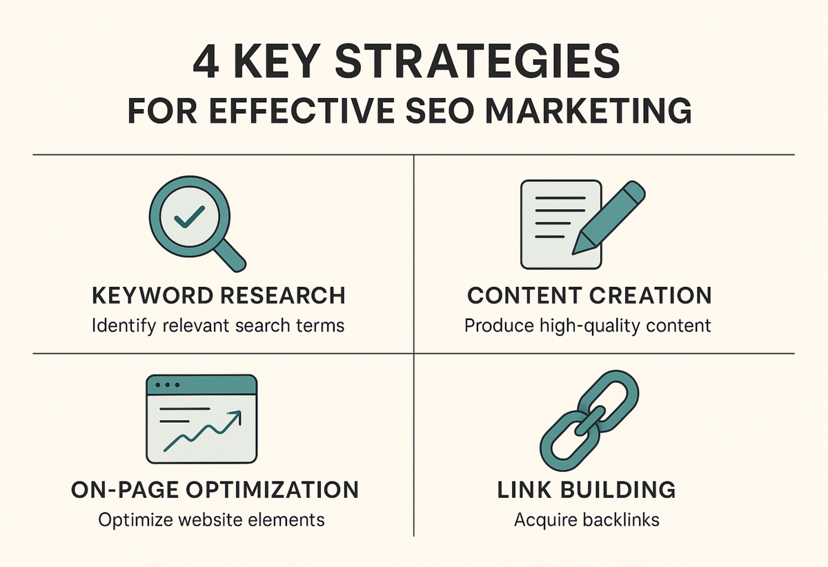 Identifying relevant keywords that potential customers are searching for is crucial for SEO marketing.