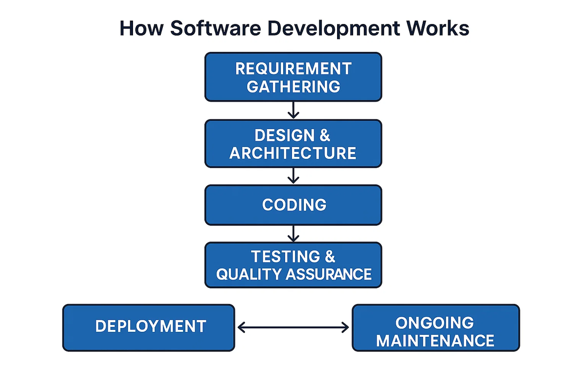 Software development is the methodical process of transforming ideas into scalable systems that solve real-world problems. It covers a wide range of disciplines, from software application development and IT software development to bespoke solutions for business operations. In simple terms, software is a collection of programmed instructions that enable computers to perform specific tasks.