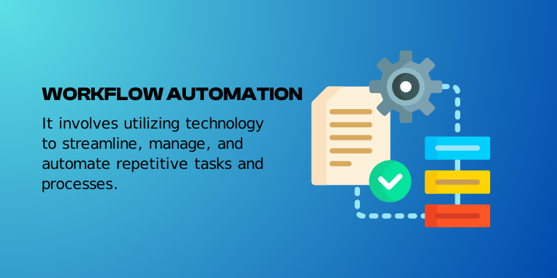 Workflow automation involves using technology to streamline, manage, and execute repetitive tasks and processes automatically, without constant manual intervention.