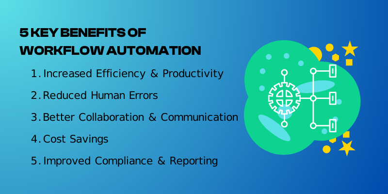 Workflow automation simplifies operations, reduces manual effort, and boosts efficiency across various roles and departments.