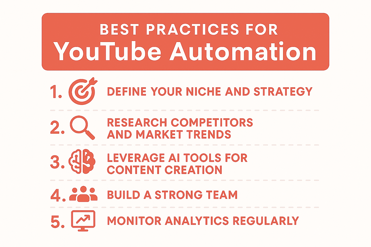 The best content for YouTube automation includes faceless channels (like tutorials or list videos), evergreen content, and SEO-focused videos that can be produced consistently with minimal human input.